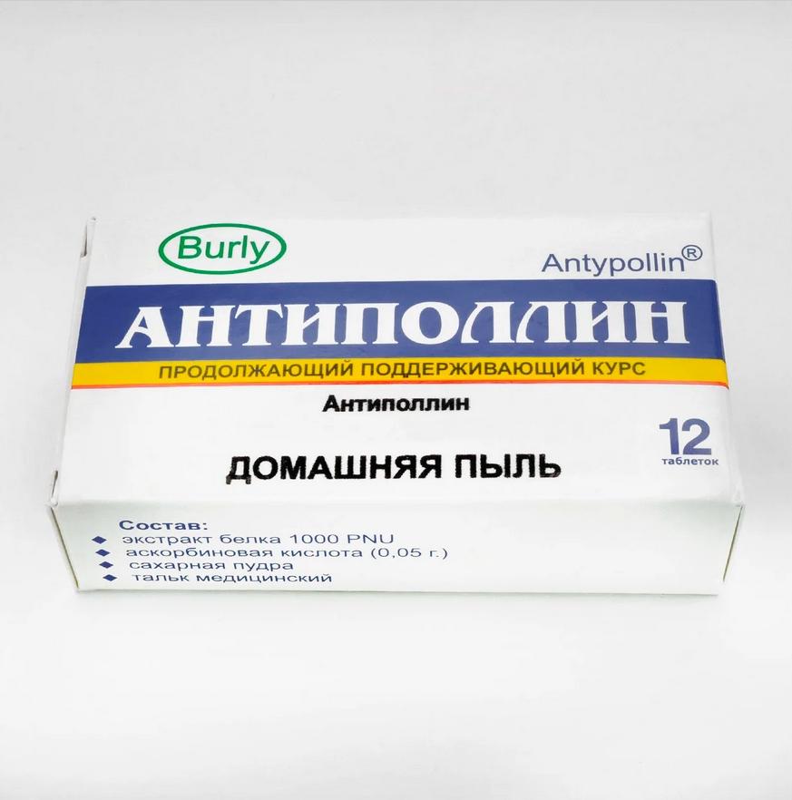 Антиполлин Домашняя пыль — комбинированный препарат для иммунопрофилактики аллергии на домашнюю пыль. Стимулирует иммунитет и снижает чувствительность к аллергену.